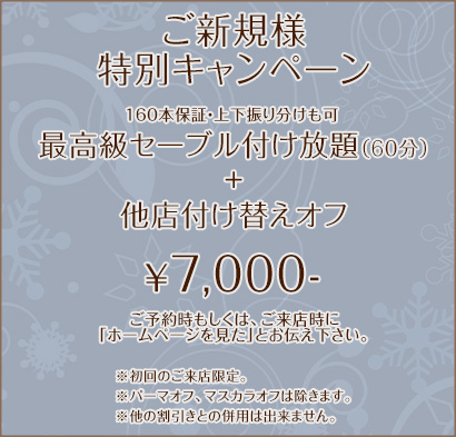 ホームページ限定で特別キャンペーンを行っております。是非ご利用下さい。